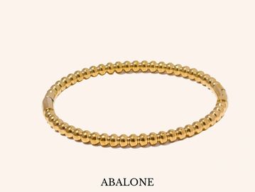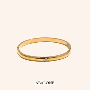 Brazalete de color dorado, hipoalergenico , con triangulo de circonitas. 60 mm de diámetro