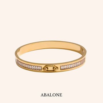 Brazalete de acero inoxidable en color dorado, 60 mm de ancho, con circonitas