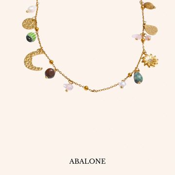 Cadena de piedras naturales con charm de luna 30 cm+ 7 cm de largo